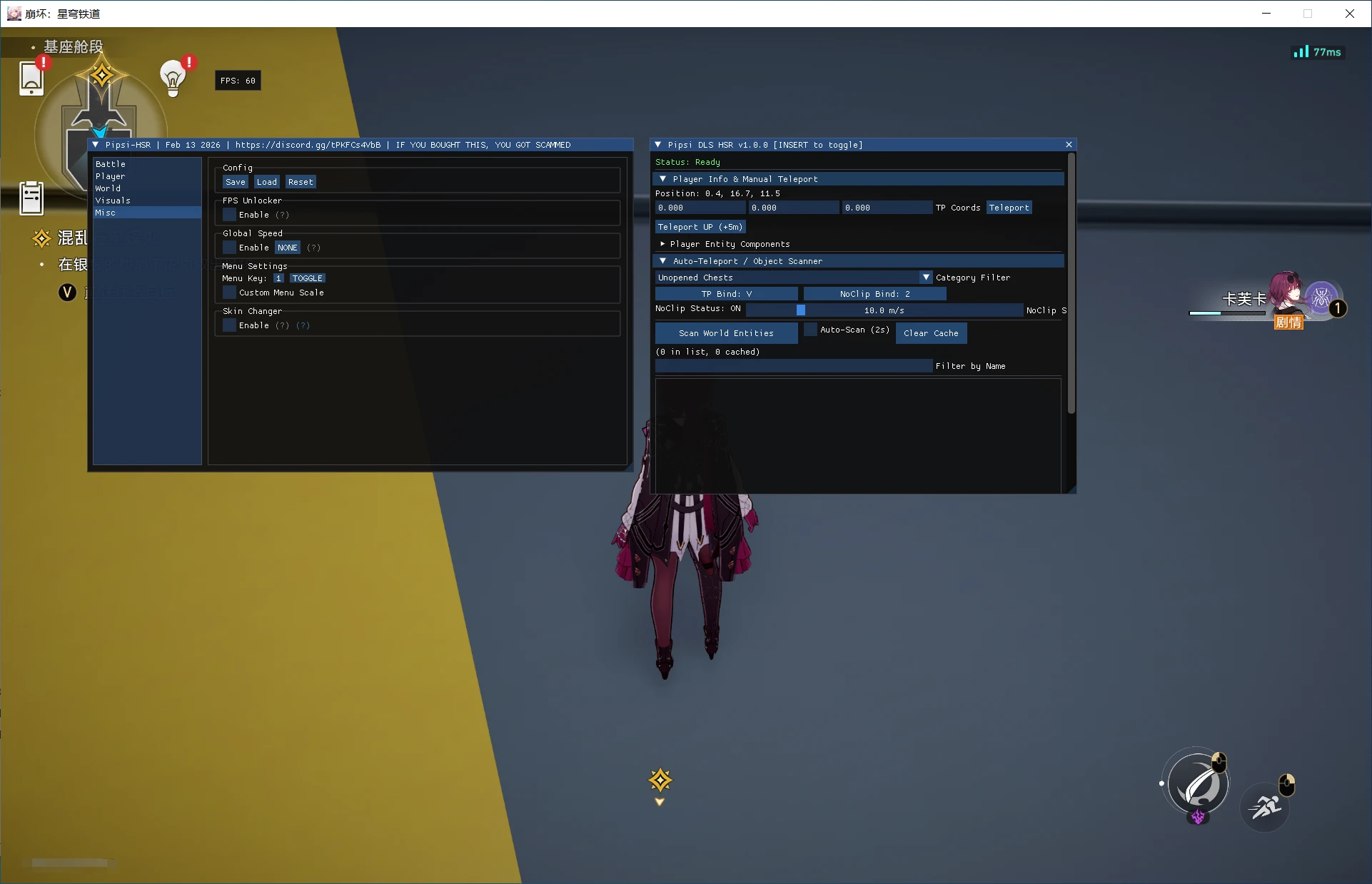 看网盘教程,先用pipsi启动游戏,设置下pipsi的菜单快捷键为其他的,然后再注入这个科技