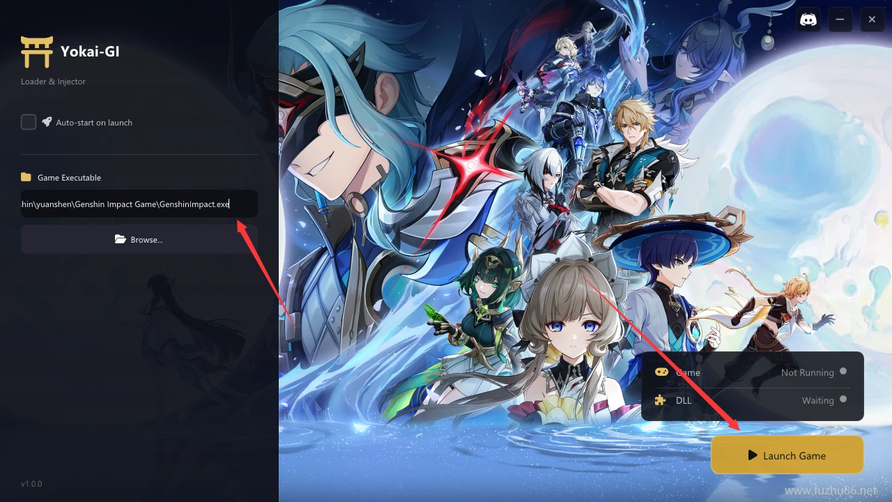 选择游戏路径,例如:Genshin Impact\Genshin Impact Game\GenshinImpact.exe,路径一定不能带中文,否则闪退,如图所示: